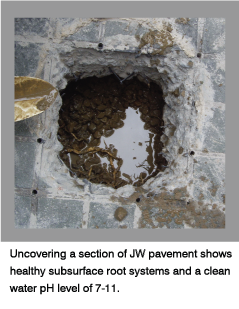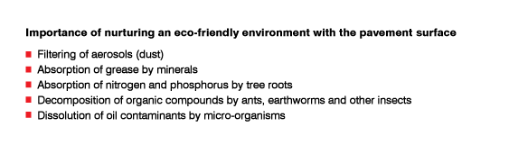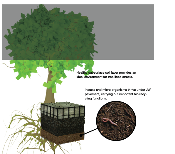 The moist soil/sediment subsurface layer under JW pavement will thrive with life - it provides a wetland eco-system with important consequences. A study by Liu et al. (2012) and Fan et al. (2013) indicates the existence of meiofauna such as chironomid larvae and desmoscolex and a detection of a considerable amount of microorganisms in the underlying layers.
